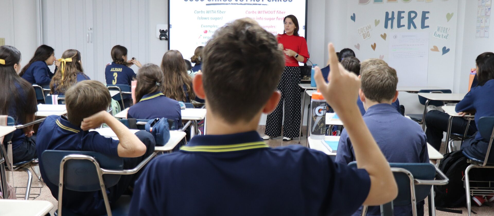 En 4º los estudiantes reciben catequesis durante el año en preparación para la Primera Comunión.
