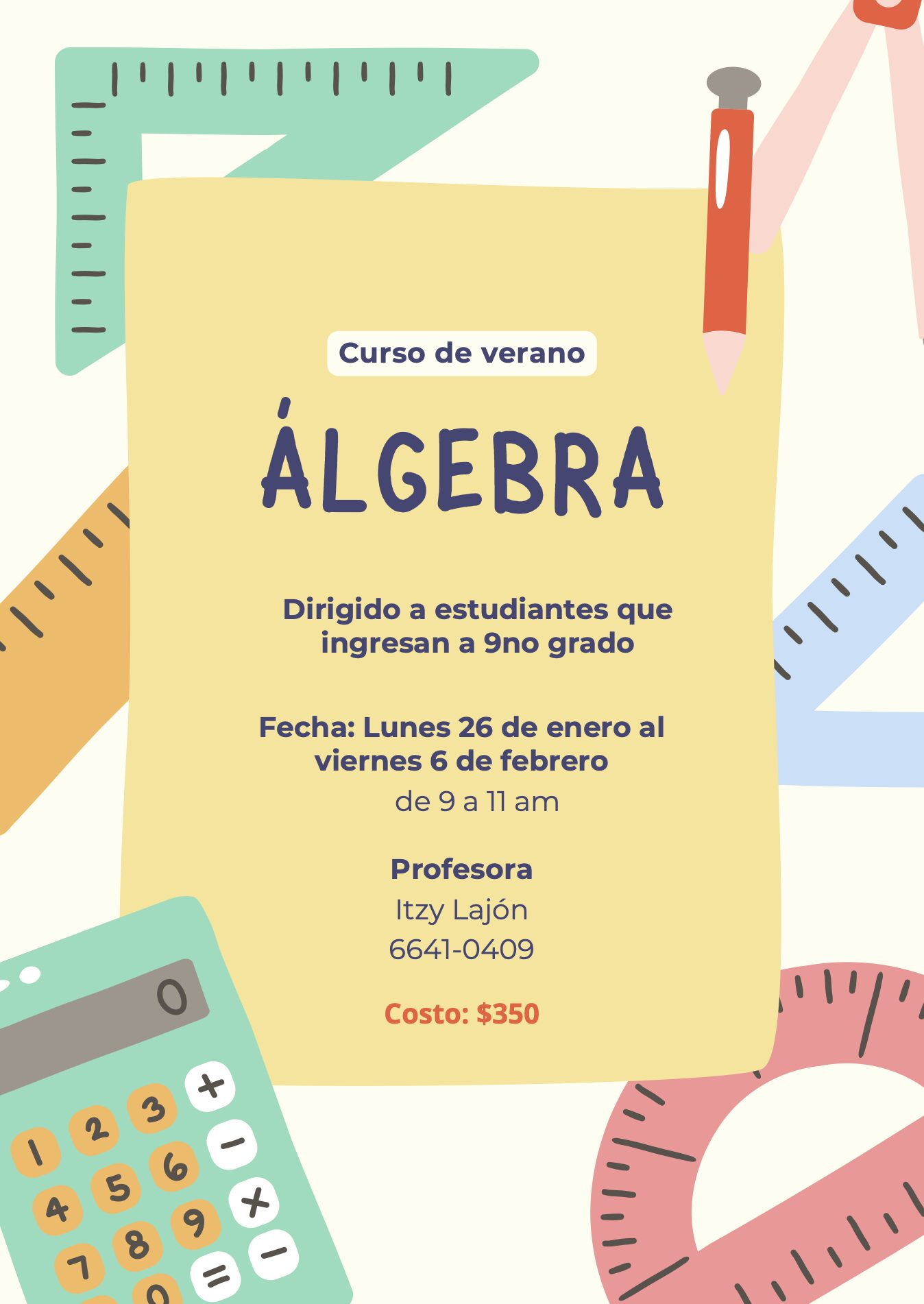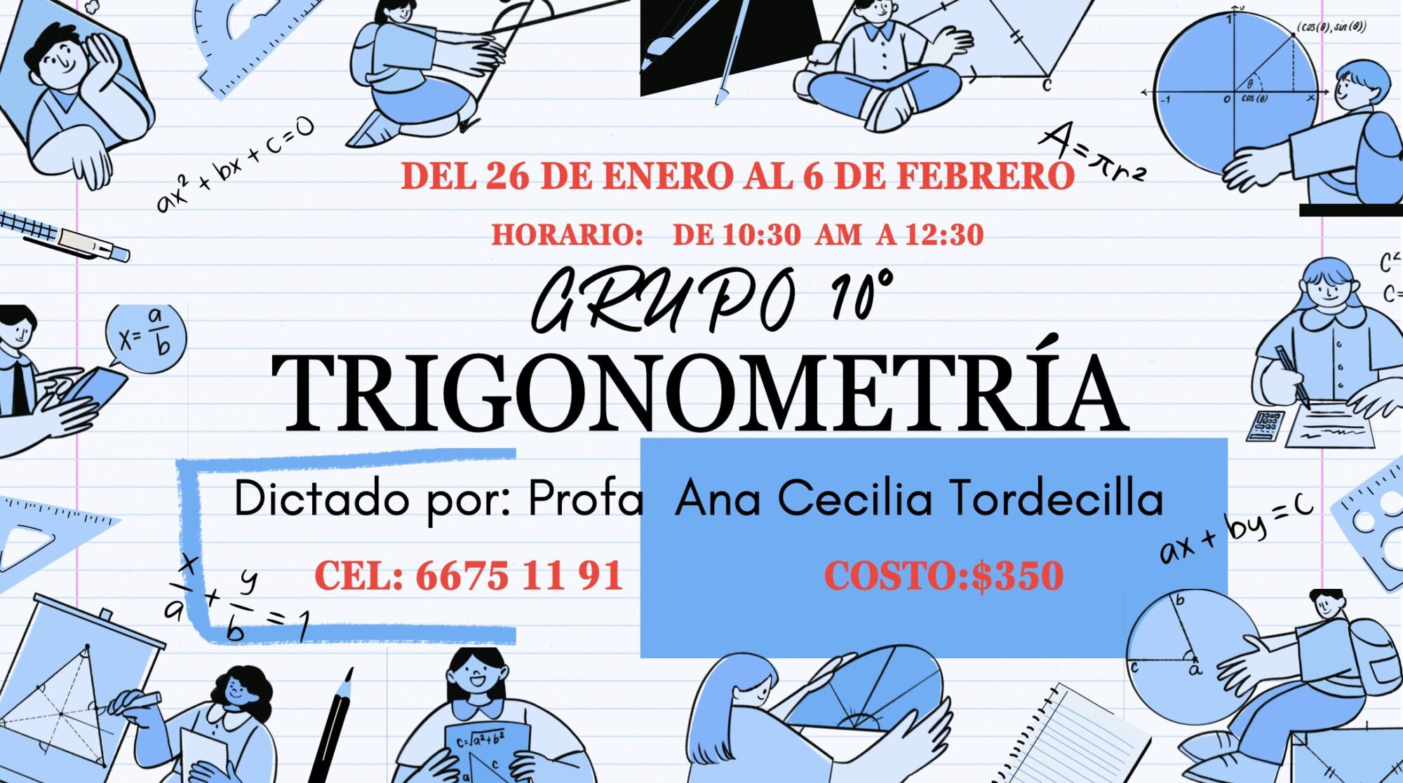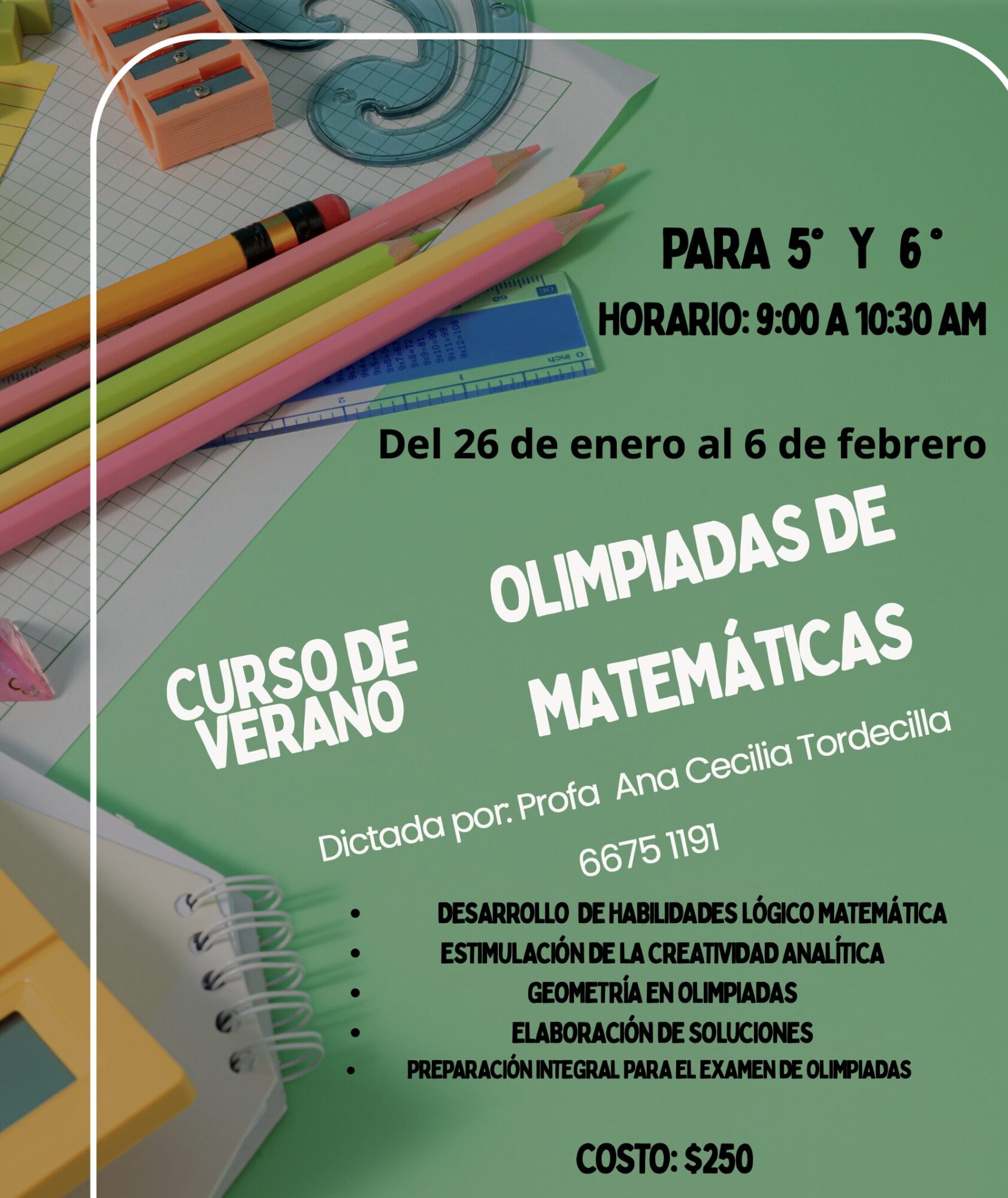Los costos e inscripción se manejan directamente con el contacto del curso.
